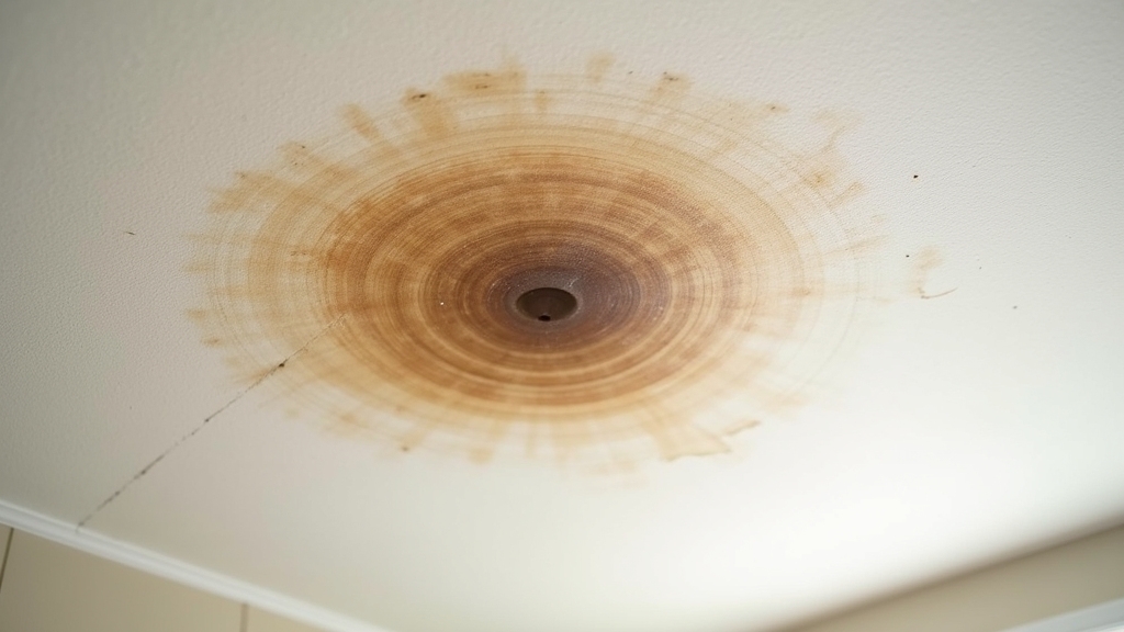 On ceilings or upper walls, irregular brown water stains often expand after storms. Paint may bubble or peel as moisture accumulates behind drywall.