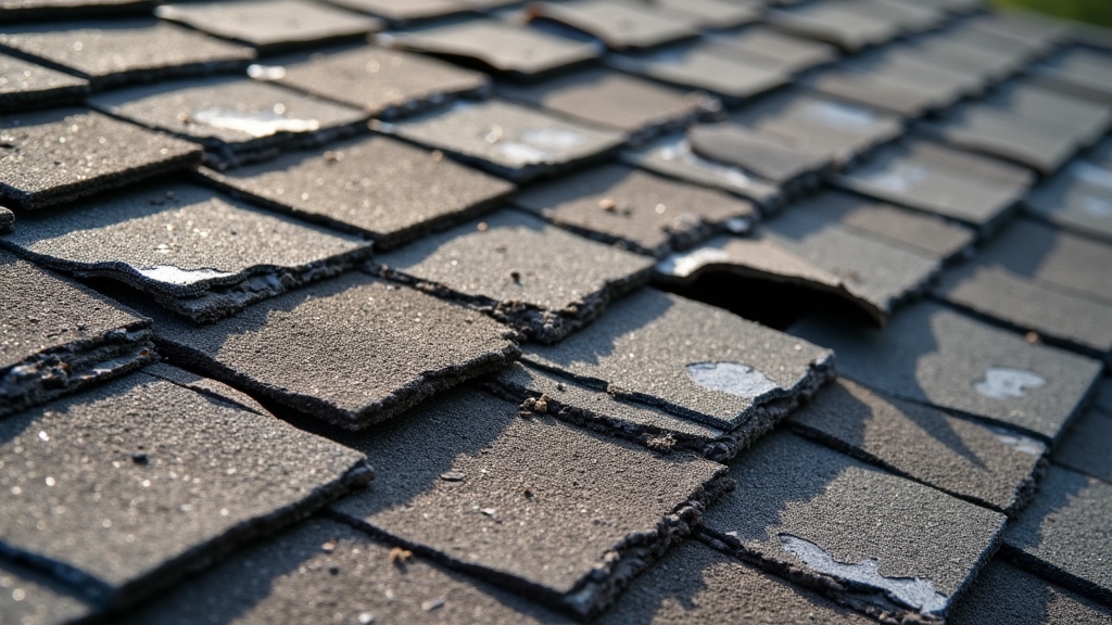 Missing, cracked, or curling shingles indicate advanced weathering and UV degradation, which reduce granular protection and accelerate asphalt brittleness.